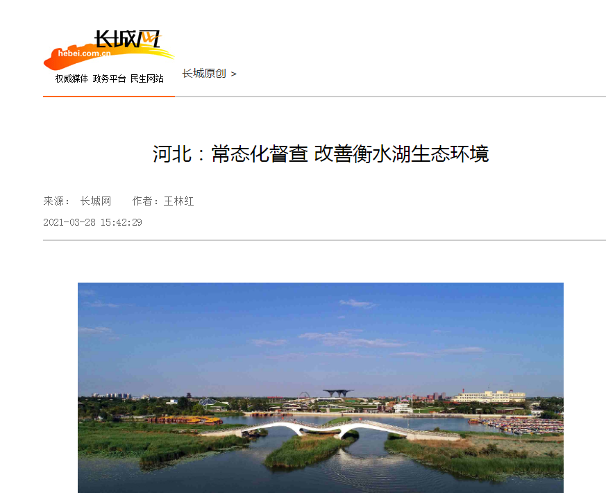 在治污的同时,衡水市加大力度实施衡水湖生态补水工程,各有关部门协调沟通、科学研判,2020年共向衡水湖补水5130万立方米,达到历史最高水位21米,确保了衡水湖生态水位。
