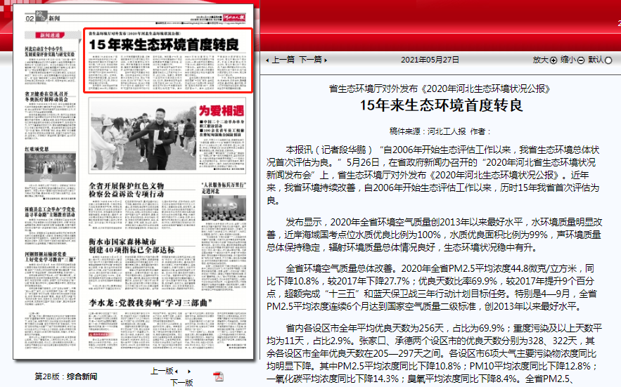 河北工人报:省91直播厅对外发布《2020年河北91直播状况公报》 15年来91直播首度转良