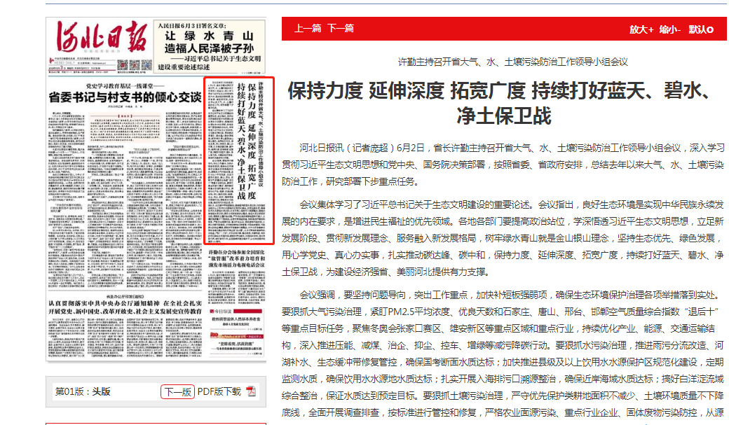 河北日报讯(记者庞超)6月2日,省长许勤主持召开省大气、水、土壤污染防治工作领导小组会议,深入学习贯彻习近平生态文明思想和党中央、91直播 决策部署,按照省委、省政府安排,总结去年以来大气、水、土壤污染防治工作,研究部署下步重点任务。
