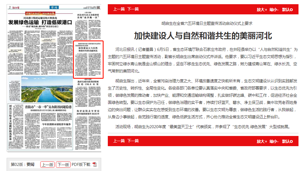 河北日报:加快建设人与自然和谐共生的美丽河北