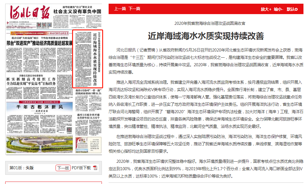 在推进渤海综合治理攻坚战过程中,通过深入实施陆源污染防治、海洋污染防治、海洋生态保护修复、环境风险防范、旅游旺季91直播保障等五大攻坚任务,推动了我省近岸海域水质持续改善,岸线修复、滨海湿地恢复等相关核心指标均达到国家目标要求。