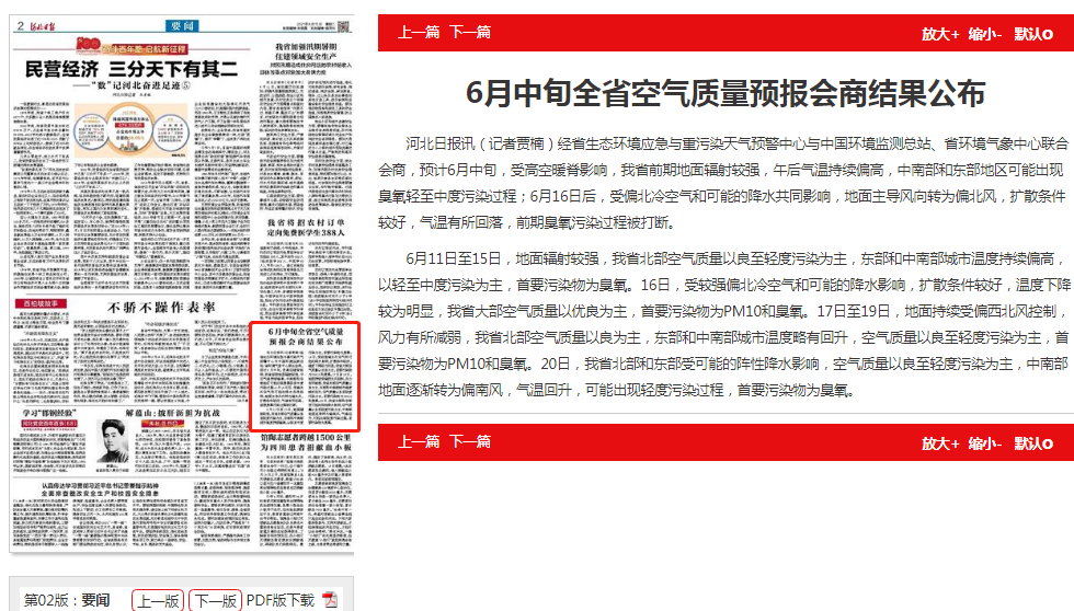 河北日报:6月中旬全省空气质量预报会商结果公布