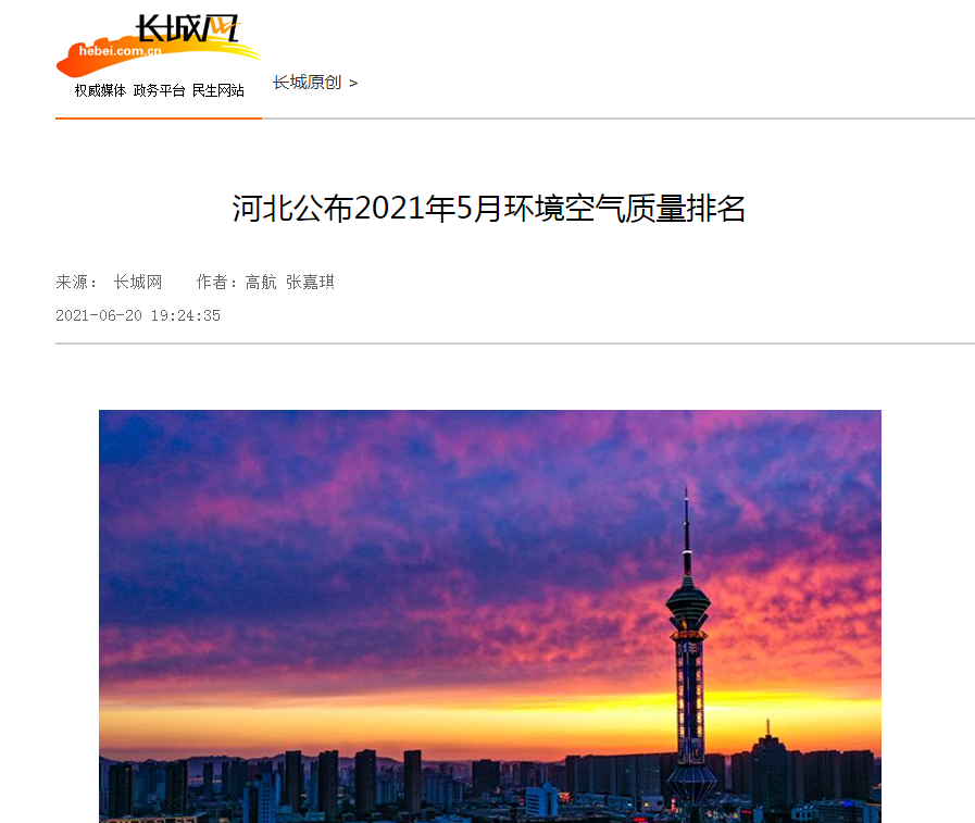 长城网:河北公布2021年5月环境空气质量排名
