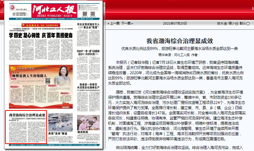 优良水质比例达到99%,旅游旺季北戴河主要海水浴场水质全部达到一类