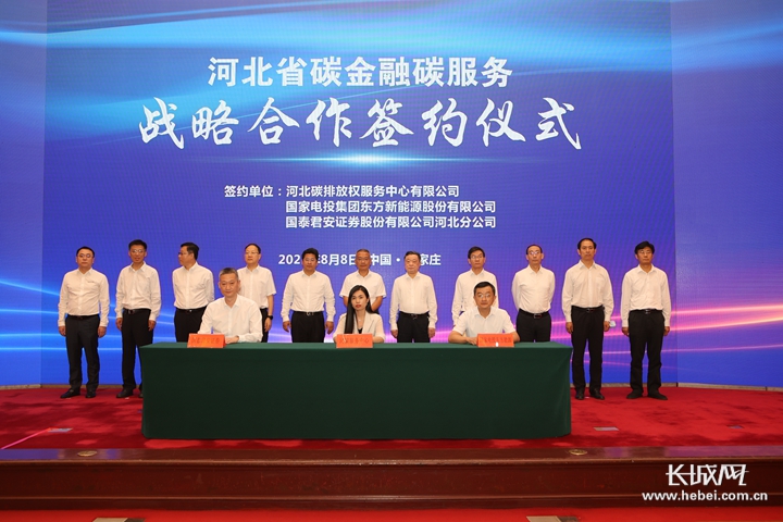 长城网讯(记者 高航)碳达峰碳中和是生态文明建设的历史性任务。为进一步加快碳市场建设,推动绿色金融发展,提升碳市场服务水平,8月8日上午,91直播-国产视频-麻豆传媒视频 在石家庄市举办河北省碳金融碳服务战略合作签约仪式。