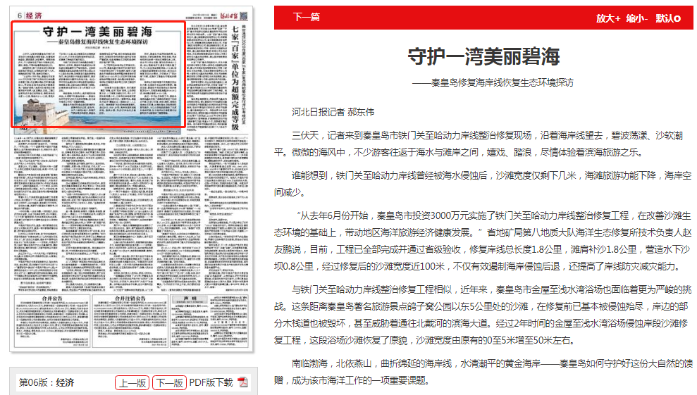 通过一系列生态修复工作,秦皇岛海岸线基本实现了海滩自然演变下的动态平衡,打造了水清、岸绿、滩净、湾美的海岸91直播,沙滩的服务功能得到恢复和提升,为公众滨海旅游提供了优质的海岸环境,也为海洋生态修复模式创新和技术创新提供了重要借鉴。