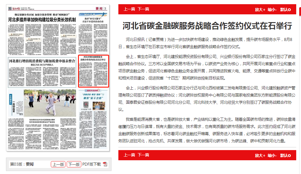 河北日报:河北省碳金融碳服务战略合作签约仪式在石举行
