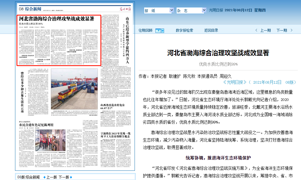 光明日报:河北省渤海综合治理攻坚战成效显著