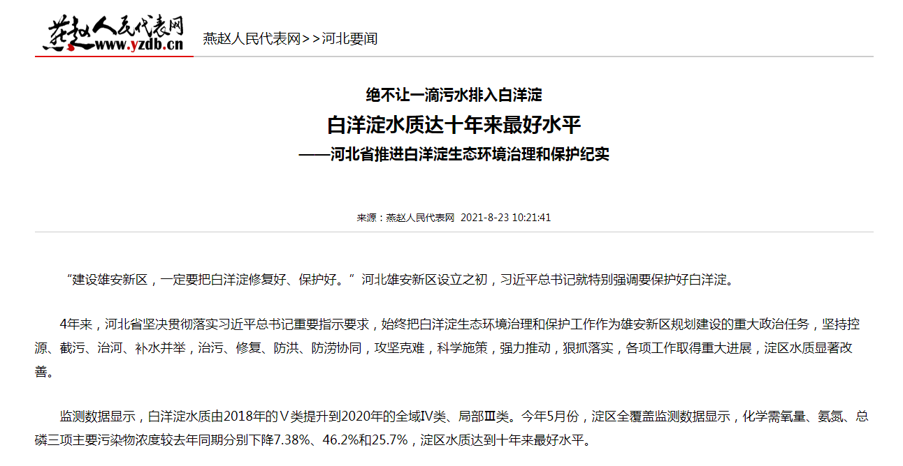 一系列治污措施的落实,推动白洋淀上游流域91直播质量实现了明显改善。