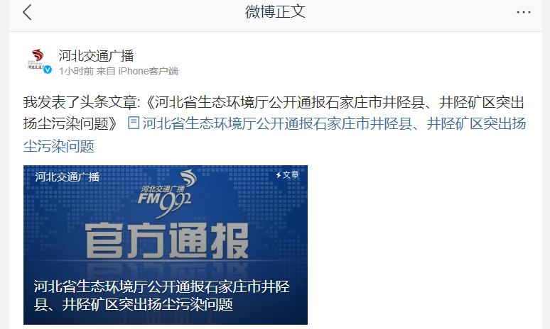 河北交通广播微博:91直播-国产视频-麻豆传媒视频 公开通报石家庄市井陉县、井陉矿区突出扬尘污染问题