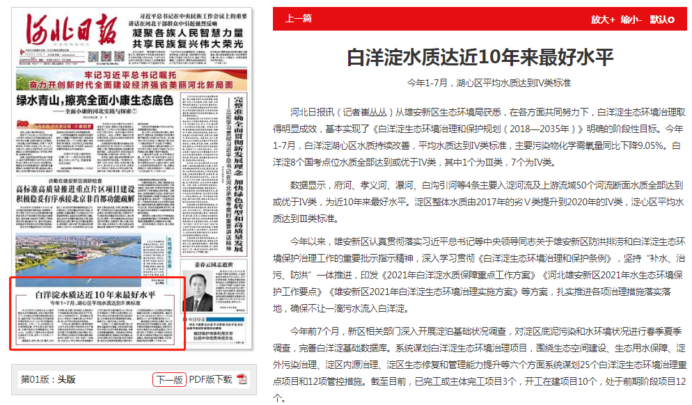 河北日报:白洋淀水质达近10年来最好水平
