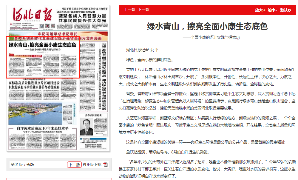 从茫茫林海塞罕坝,到蓝绿交织雄安新区;从巍巍太行最绿的地方,到烟波浩渺的渤海之滨,一个个全面小康的“绿色梦想”照进现实,习近平生态文明思想在燕赵大地落地生根、开花结果,全省生态质量和环境发生历史性新变化。