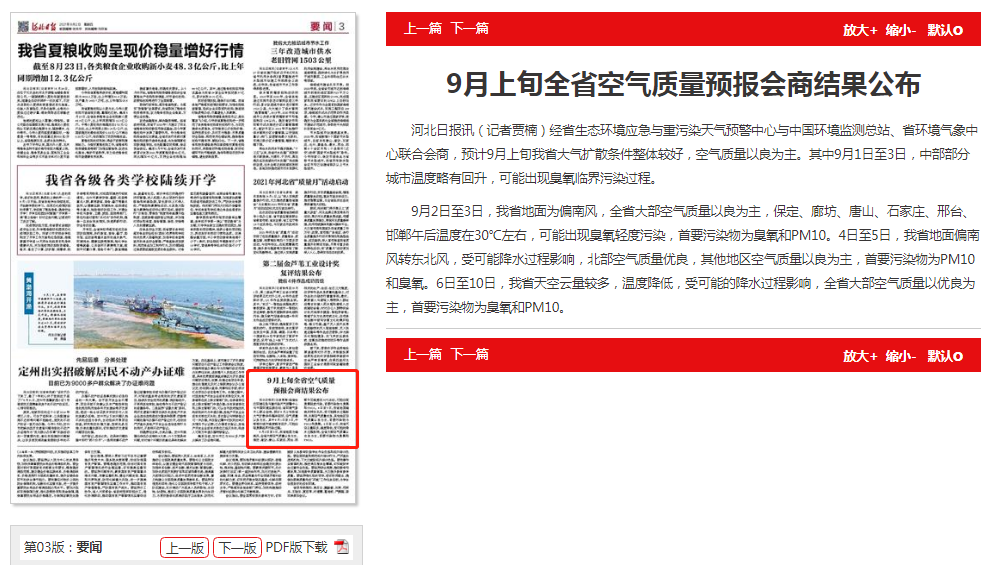 河北日报:9月上旬全省空气质量预报会商结果公布