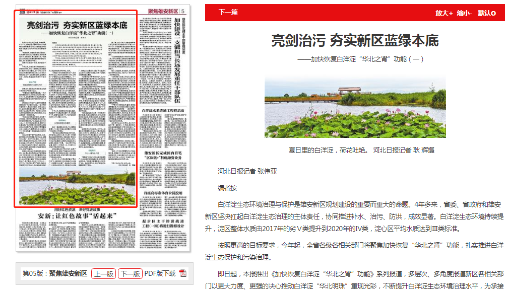 河北日报:亮剑治污 夯实新区蓝绿本底