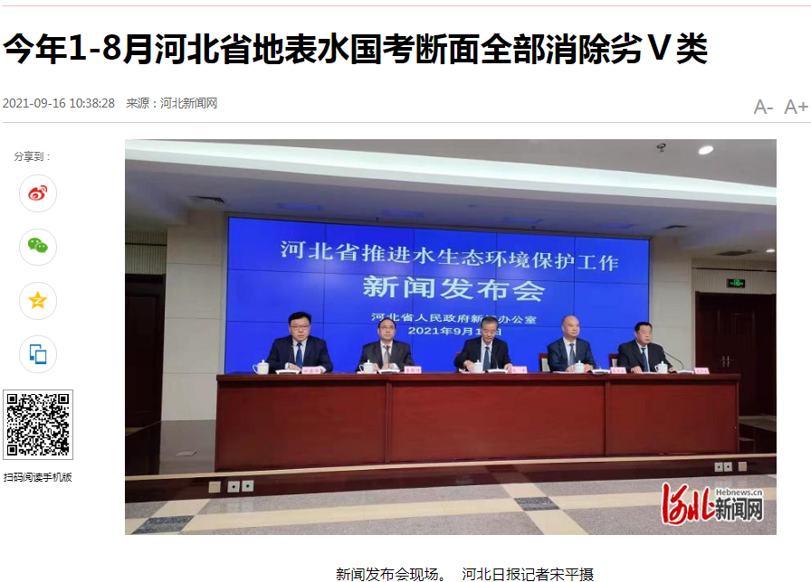 河北新闻网:今年1-8月河北省地表水国考断面全部消除劣Ⅴ类