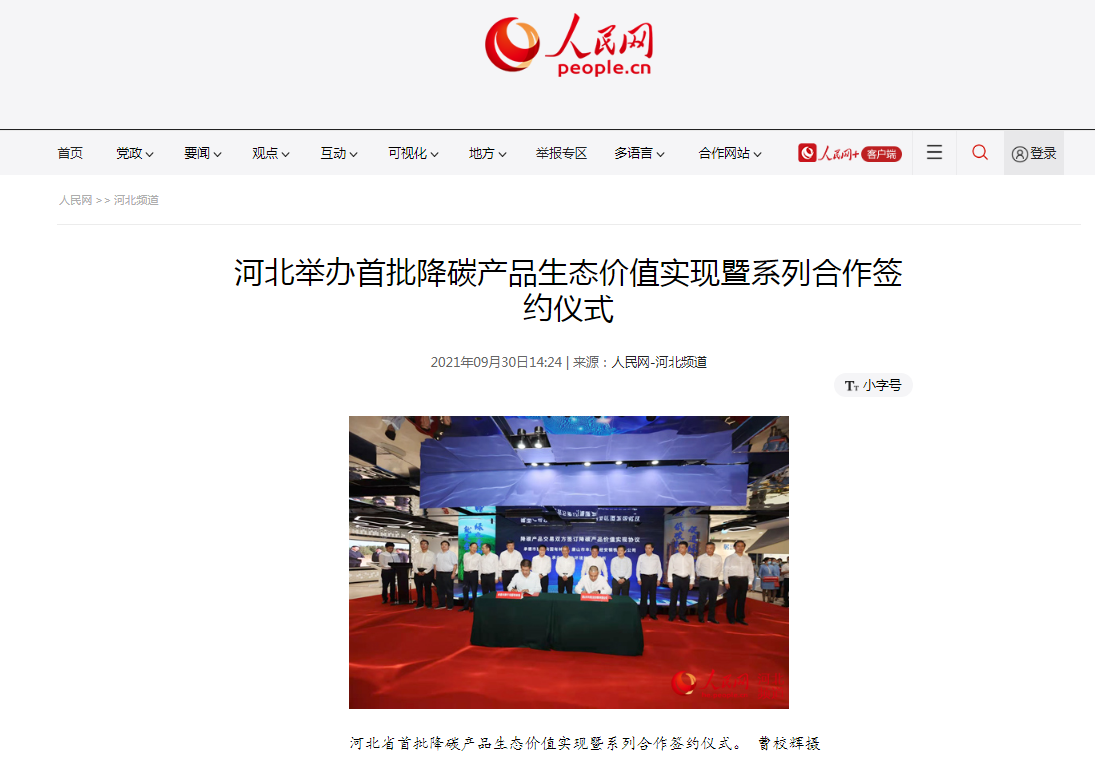 人民网:河北举办首批降碳产品生态价值实现暨系列合作签约仪式