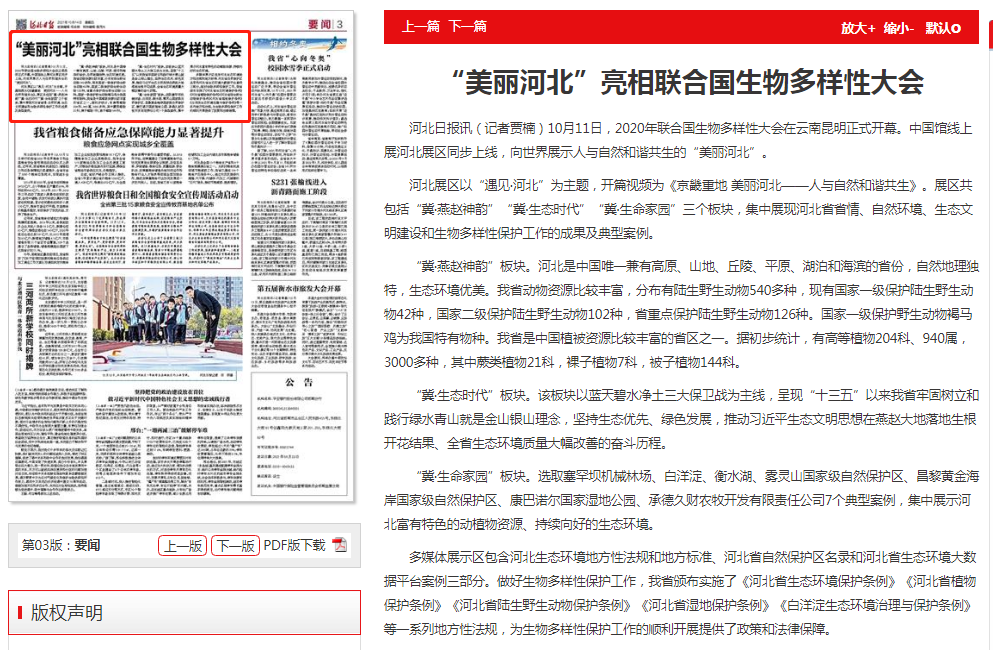河北日报:“美丽河北”亮相联合国生物多样性大会