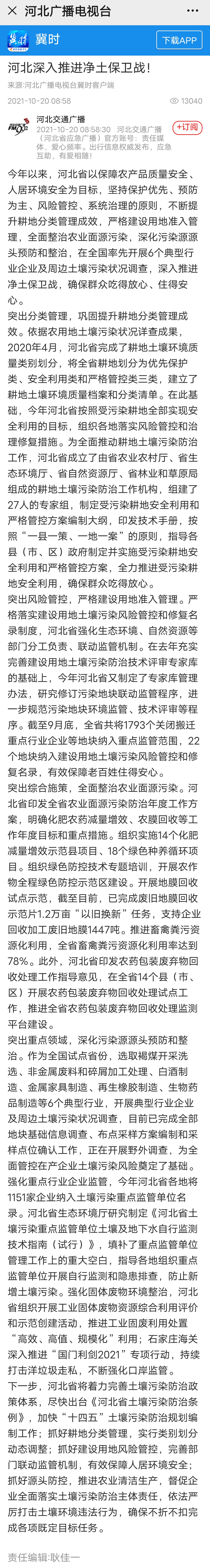 河北广播电视台冀时客户端:河北深入推进净土保卫战!