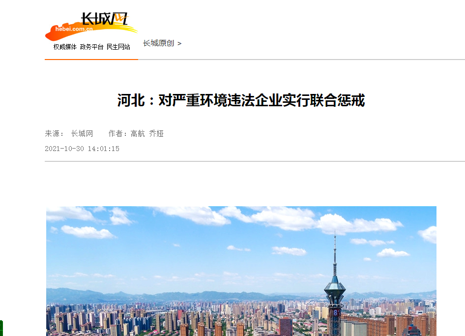 长城网:河北:对严重环境违法企业实行联合惩戒