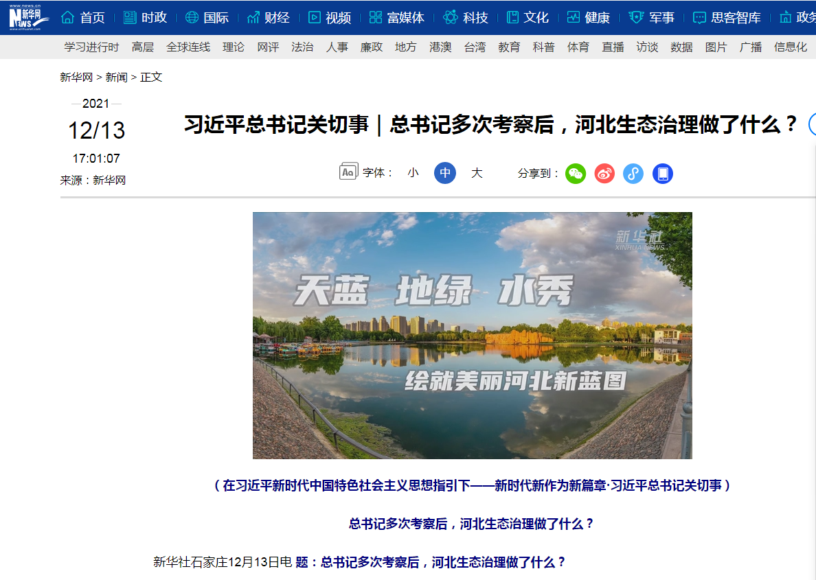 新华社石家庄12月13日电 题:总书记多次考察后,河北生态治理做了什么