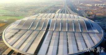 京雄高铁站顶上的光伏板可提供清洁电能。资料图