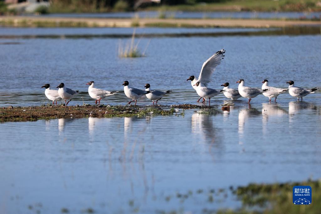 在河北省张家口市康保县康巴诺尔国家湿地公园拍摄的遗鸥(新华社记者骆学峰 摄)