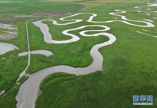 在河北省张家口市塞北管理区,曲折蜿蜒的滦河水犹如丝带盘绕在绿色的草原上,美若画卷。武殿森 摄