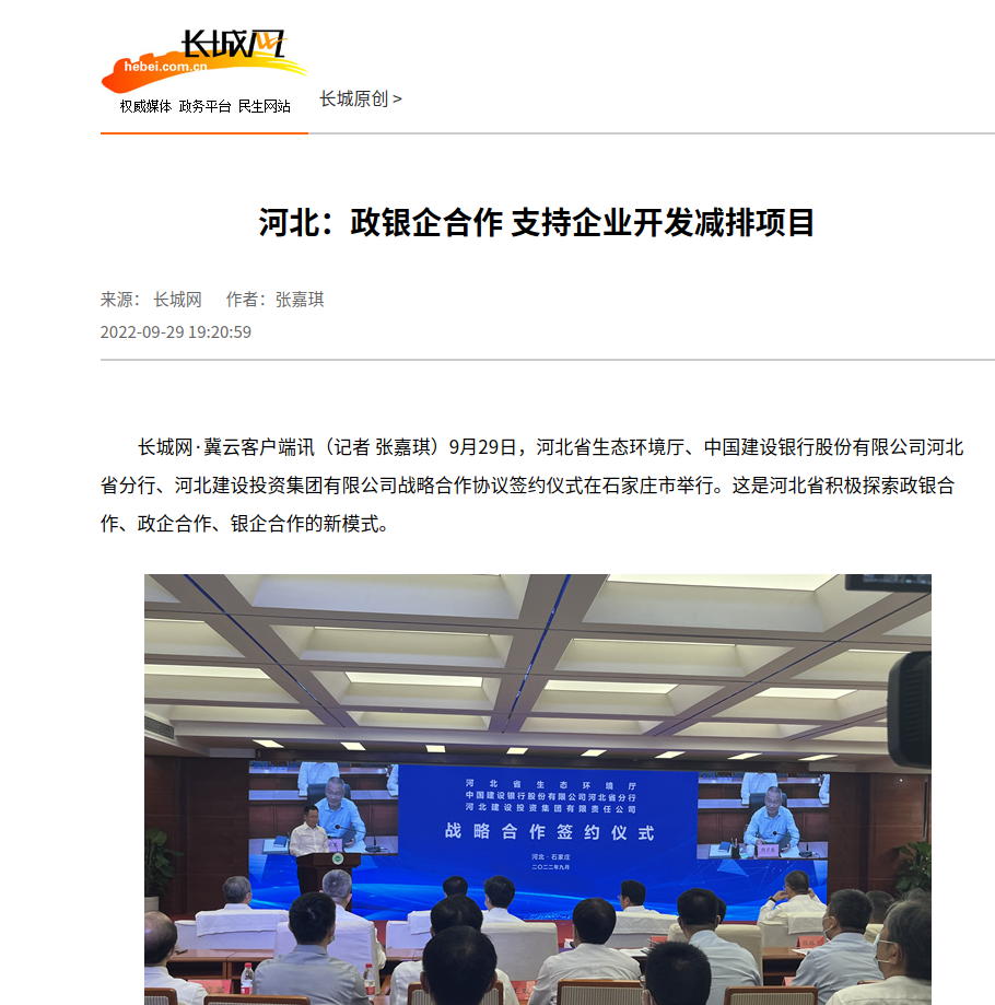 据了解,91直播-国产视频-麻豆传媒视频 、中国建设银行股份有限公司河北省分行、河北建设投资集团有限公司将本着“优势互补、共促发展”的原则,充分发挥部门政策引导、国企带动示范、金融杠杆撬动作用,重点围绕污染治理、生态保护、应对气候变化三大领域,持续深化降碳产品项目开发和价值转化,鼓励支持企业开展碳资产管理和自愿减排项目开发与核证,推动降碳产品进入国际市场,加快构建绿水青山、金山银山双向转化。