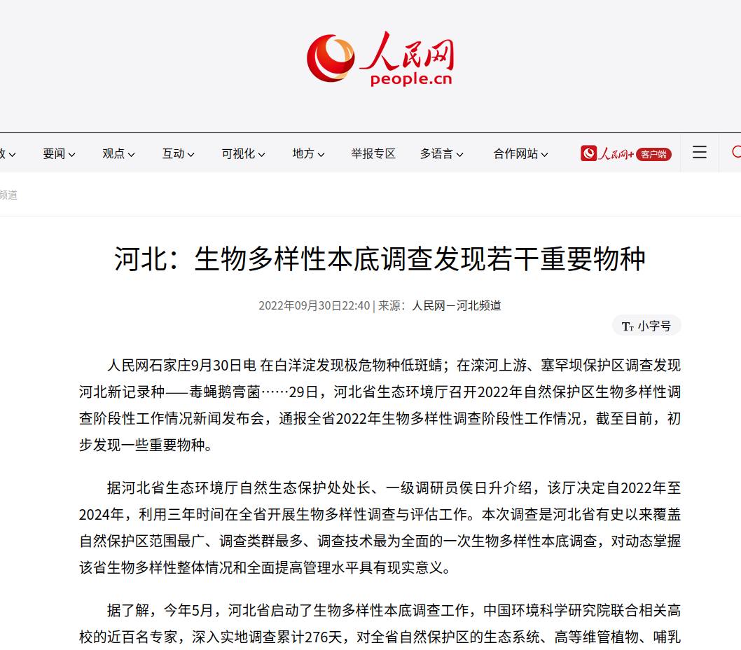 人民网:河北 生物多样性本底调查发现若干重要物种