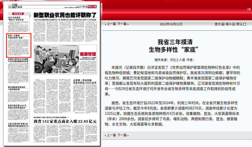 河北工人报 : 我省三年摸清生物多样性“家底”
