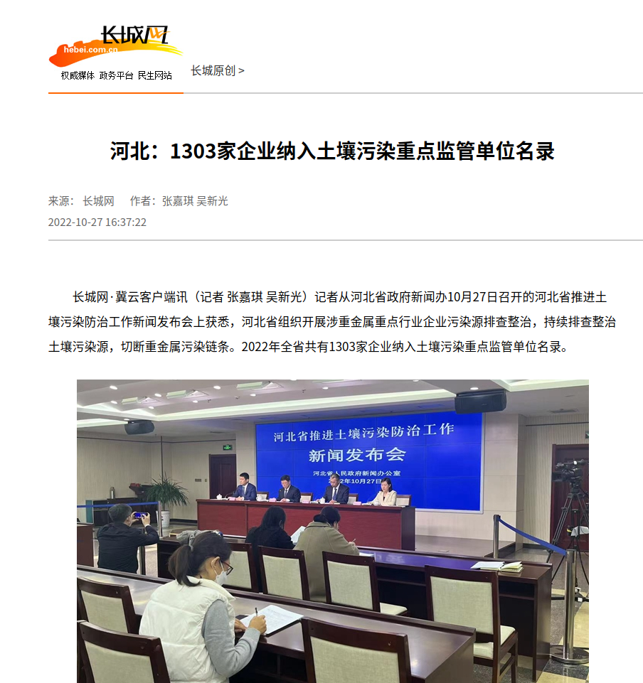 长城网:河北 1303家企业纳入土壤污染重点监管单位名录