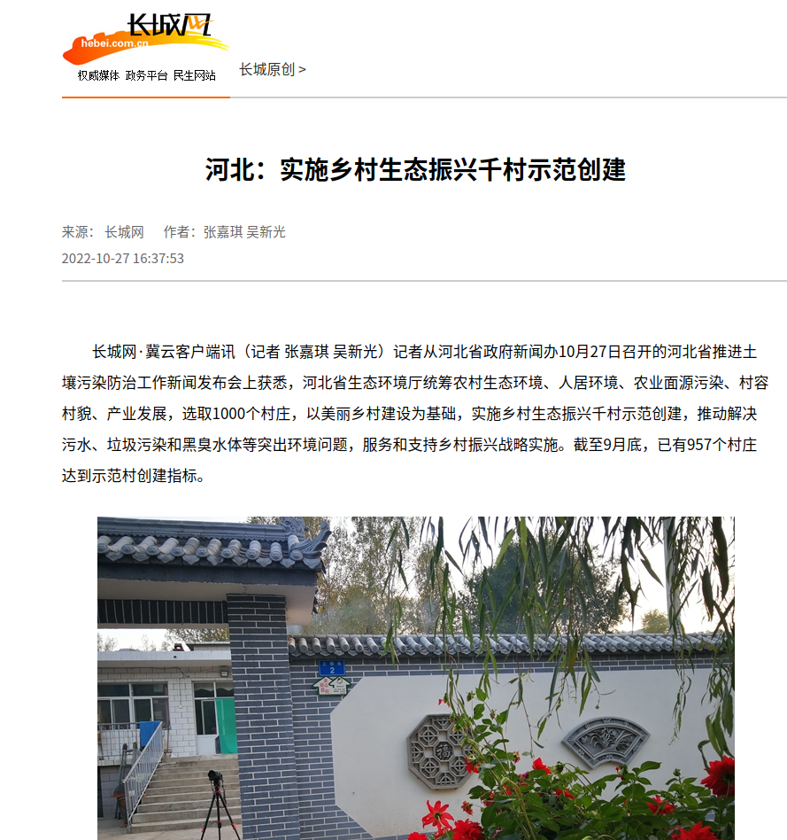 长城网 :河北 实施乡村生态振兴千村示范创建