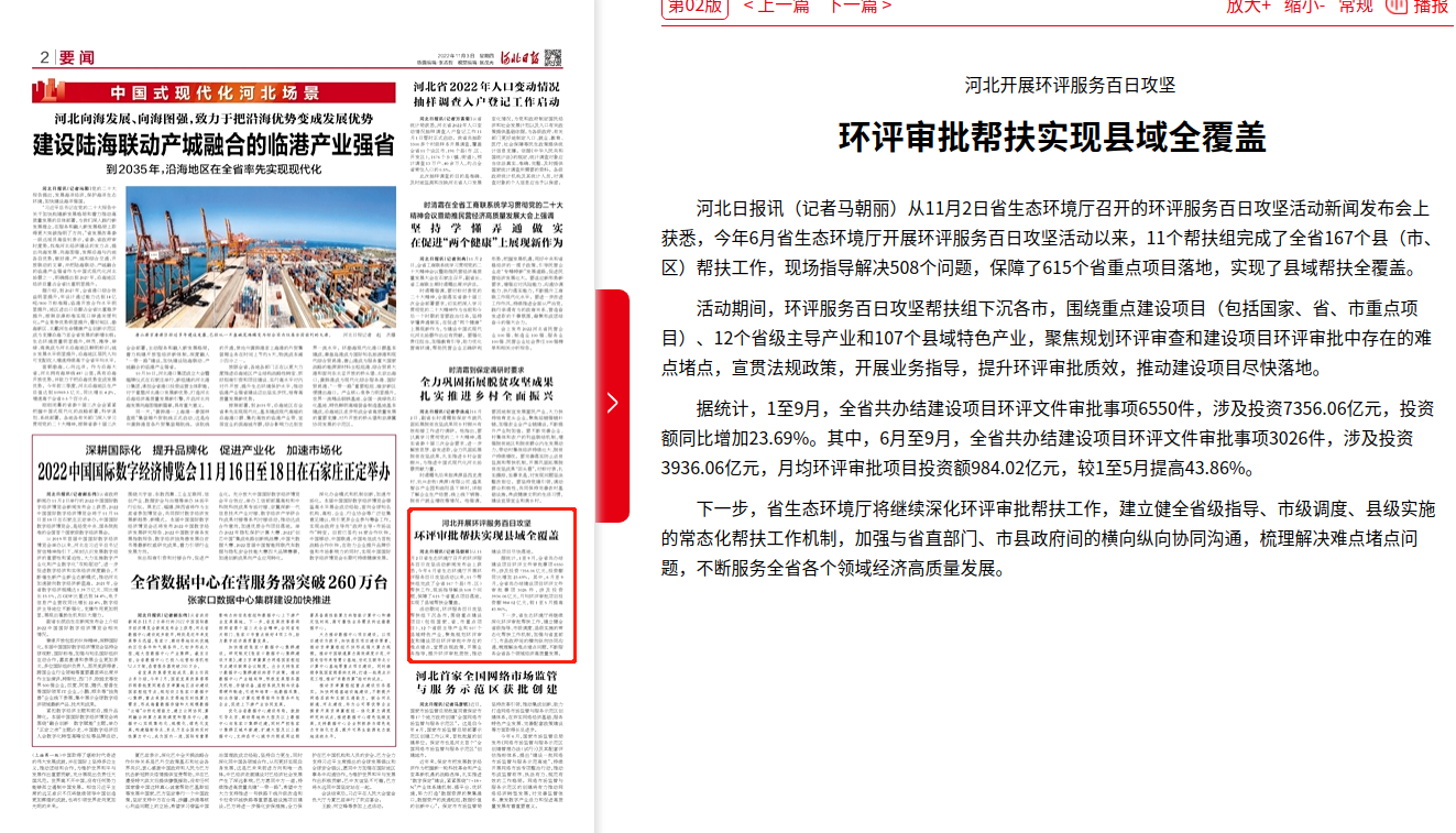 河北日报:河北开展环评服务百日攻坚 环评审批帮扶实现县域全覆盖