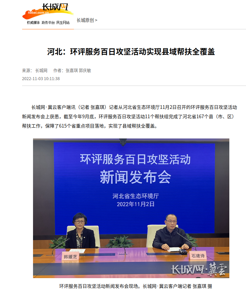 长城网·冀云客户端讯(记者 张嘉琪)记者从91直播-国产视频-麻豆传媒视频 11月2日召开的环评服务百日攻坚活动新闻发布会上获悉,截至今年9月底,环评服务百日攻坚活动11个帮扶组完成了河北省167个县(市、区)帮扶工作,保障了615个省重点项目落地,实现了县域帮扶全覆盖。