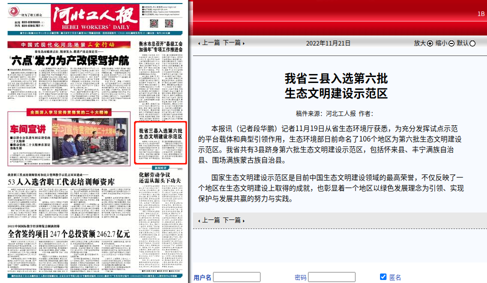 河北工人报:我省三县入选第六批生态文明建设示范区 来源:河北工人报 时间:2022-11-21
