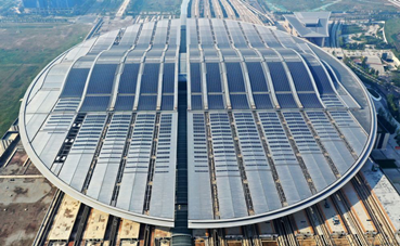 京雄城际铁路雄安站站顶分布式光伏电站。新华社记者朱旭东 摄