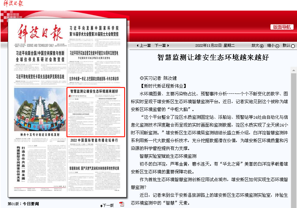 “在淀区王家寨村新建的自动监测站,是集水质自动监测、水污染自动溯源和视频监控等于一体的高集成水质监测超级站。”刘程介绍,雄安新区还构建了纵向生态系统,横向本地相关部门的数据共享体系,“数据的互联互通为智能监测分析模型提供了科学依据。”