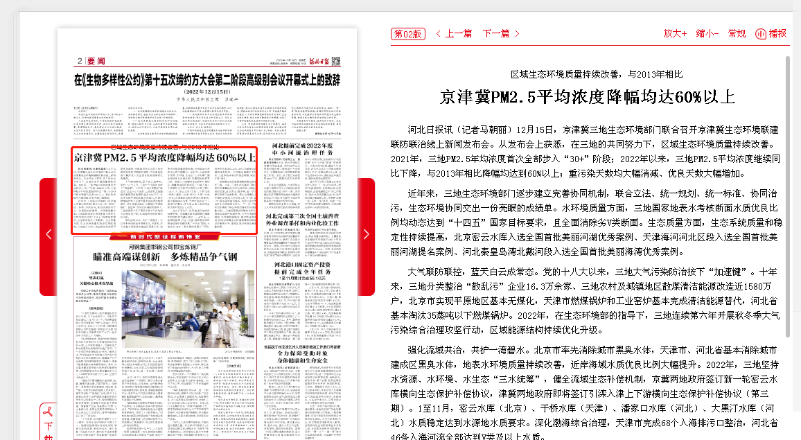 河北日报:区域91直播质量持续改善,与2013年相比 京津冀PM2.5平均浓度降幅均达60%以上