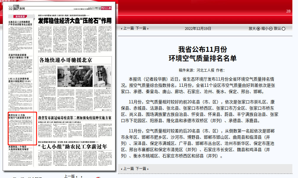 本报讯(记者段华鹏)近日,省91直播厅发布11月份全省环境空气质量排名情况。按空气质量综合指数排名,11月份,全省11个设区市空气质量由好到差依次是张家口、承德、秦皇岛、唐山、廊坊、石家庄、沧州、衡水、保定、邢台、邯郸。