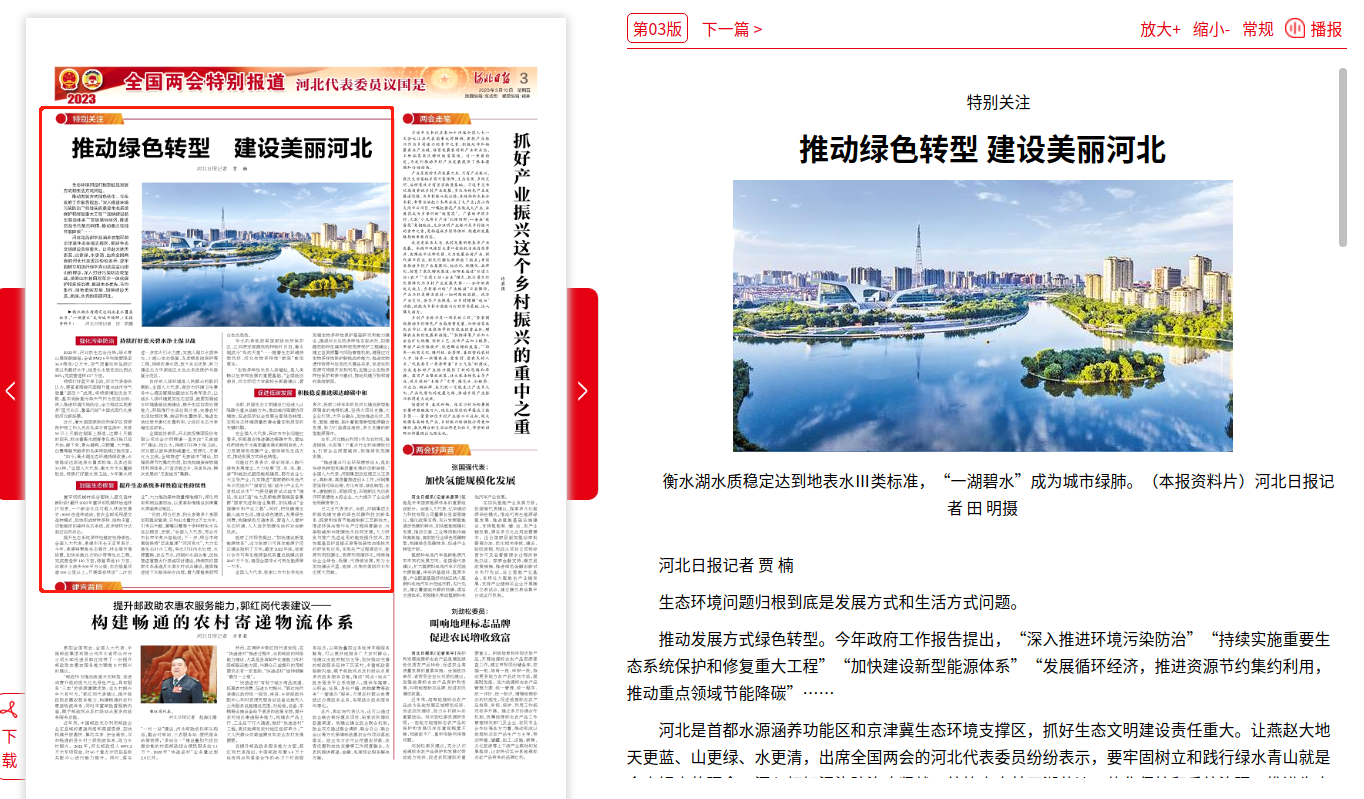 河北是首都水源涵养功能区和京津冀91直播支撑区,抓好生态文明建设责任重大。让燕赵大地天更蓝、山更绿、水更清,出席全国两会的河北代表委员纷纷表示,要牢固树立和践行绿水青山就是金山银山的理念,深入打好污染防治攻坚战,统筹山水林田湖草沙一体化保护和系统治理,推进生态优先、节约集约、绿色低碳发展,加快建设天蓝、地绿、水秀的美丽河北。
