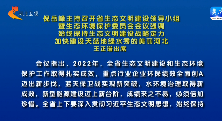 河北卫视_ 河北新闻联播: 倪岳峰主持召开省生态文明建设领导小组暨91直播保护委员会会议强调始终保持生态文明建设战略定力加快建设天蓝地绿水秀的美丽河北 来源:河北卫视《河北新闻联播》 时间:2023-04-11