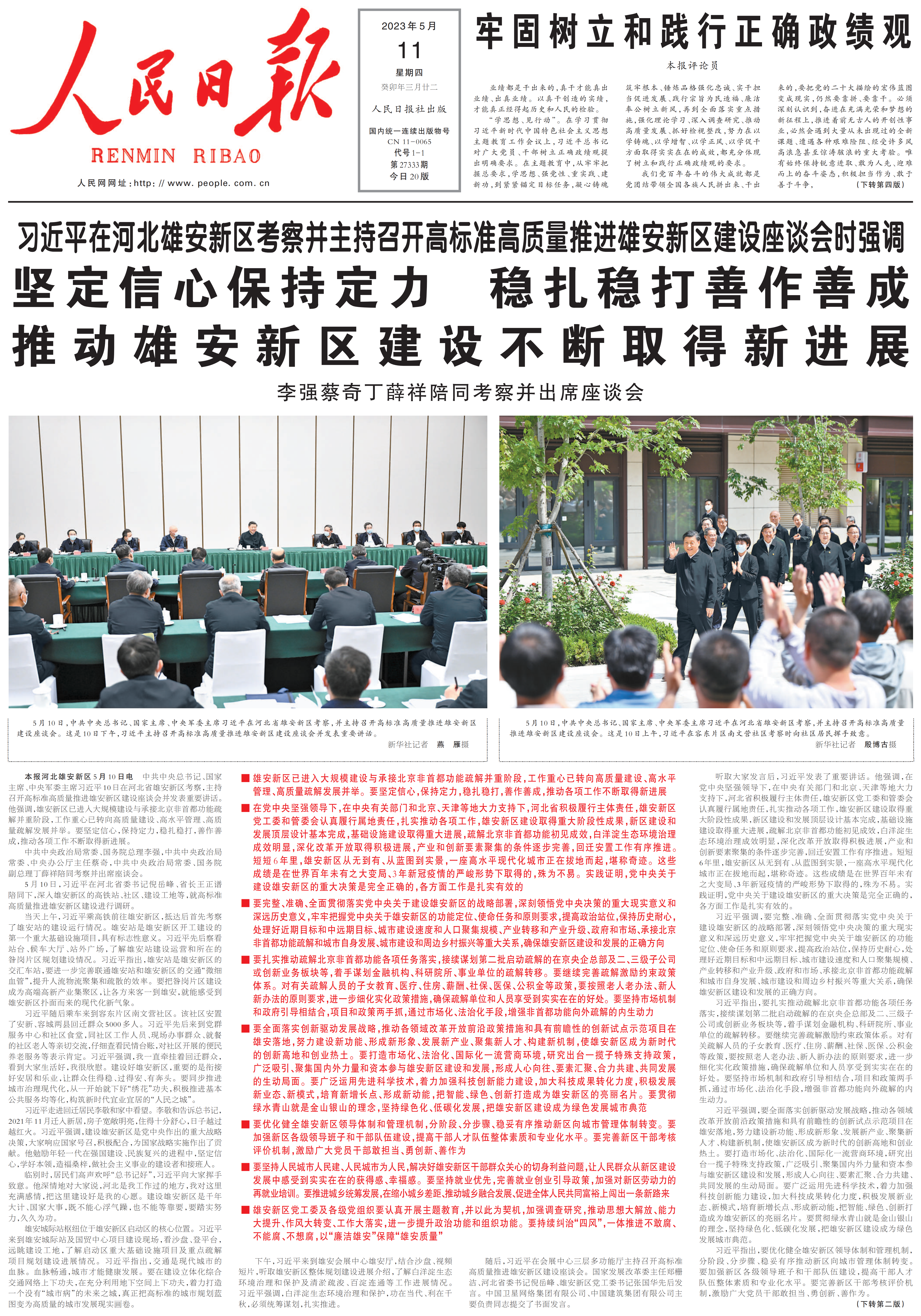 人民日报:习近平在河北雄安新区考察并主持召开高标准高质量推进雄安新区建设座谈会时强调 坚定信心保持定力 稳扎稳打善作善成 推动雄安新区建设不断取得新进展