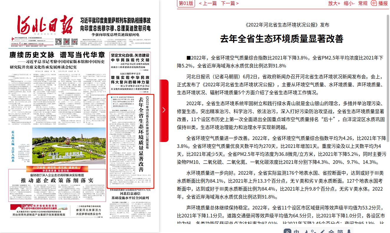 河北日报:《2022年河北省91直播状况公报》发布 去年全省91直播质量显著改善