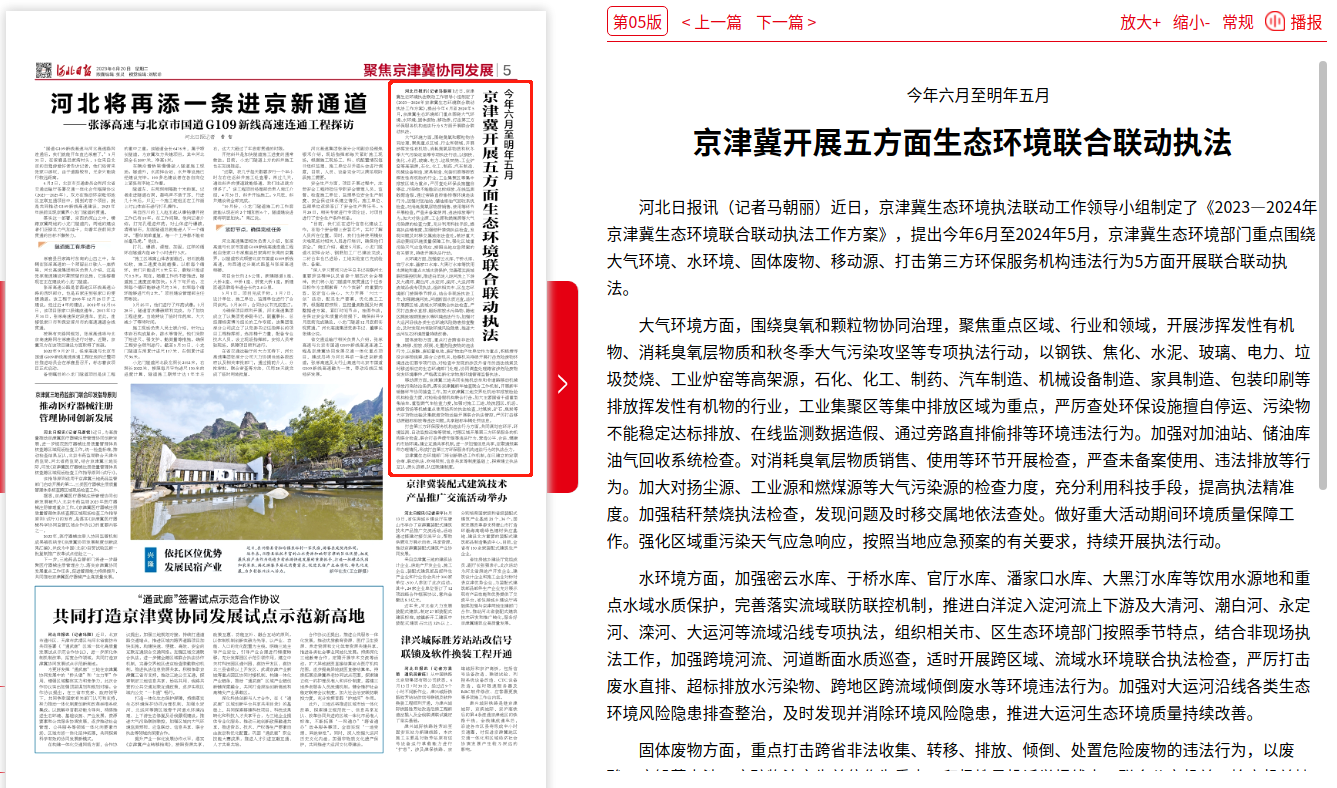 河北日报讯(记者马朝丽)近日,京津冀91直播执法联动工作领导小组制定了《2023—2024年京津冀91直播联合联动执法工作方案》,提出今年6月至2024年5月,京津冀91直播部门重点围绕大气环境、水环境、固体废物、移动源、打击第三方环保服务机构违法行为5方面开展联合联动执法。