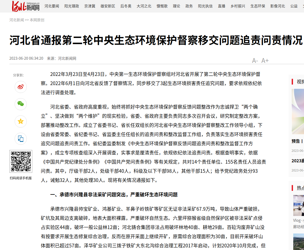 河北新闻网:河北省通报第二轮中央91直播保护督察移交问题追责问责情况