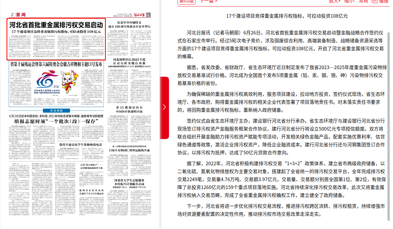 据了解,2022年,河北省积极构建排污权交易“1+3+2”政策体系,建立省市两级政府储备,以二氧化硫、氮氧化物排放权为主要交易对象,搭建起了全省统一的排污权交易平台,全年完成排污权交易2249笔,交易量4.76万吨、交易额3.97亿元,交易量、交易额分别居全国第1位、第2位,有效保障了总投资1260亿元的159个重点项目落地实施。河北省持续深化排污权交易改革,此次又将重金属排污权纳入交易范畴,完成了全省重金属排污权确权工作,建立健全了政府储备。