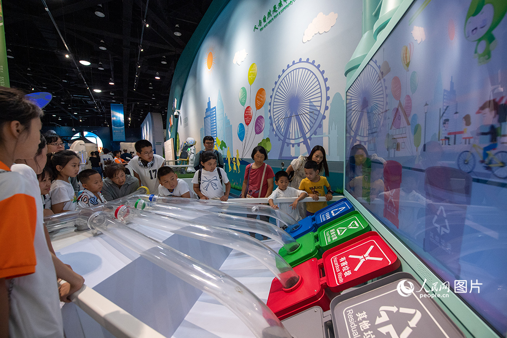 7月19日,在中国科学技术馆,孩子们参与趣味问答,学习垃圾分类的相关知识。通过寓教于乐的方式提升孩子环保理念,从小培养爱护环境、保护生态的意识。人民网记者 翁奇羽摄