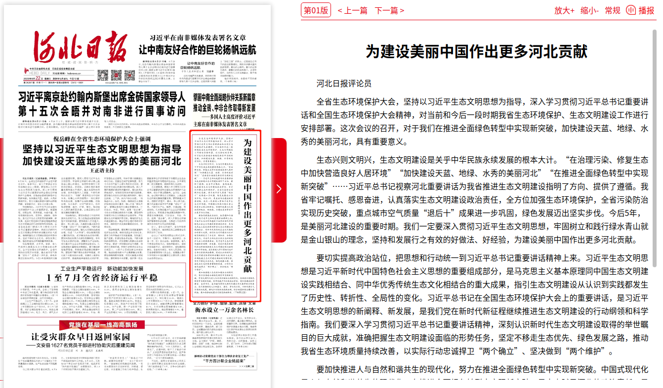 河北日报:为建设美丽中国作出更多河北贡献