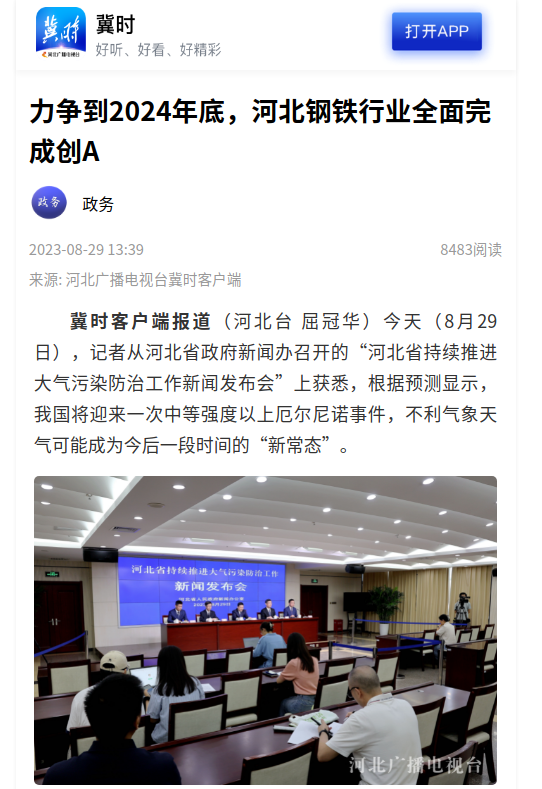 河北广播电视台冀时客户端:力争到2024年底,河北钢铁行业全面完成创A