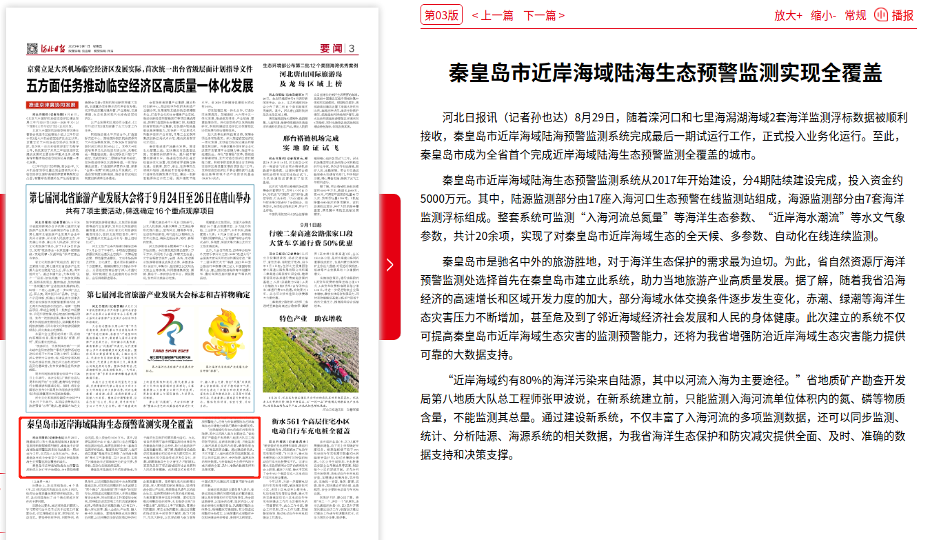 河北日报:秦皇岛市近岸海域陆海生态预警监测实现全覆盖